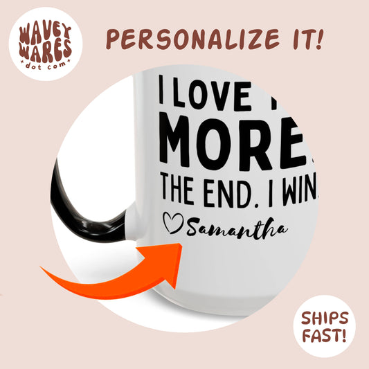Personalized I Love You More. The End. I Win. Custom Name Coffee Mug