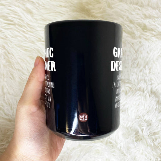 WaveyWares® Graphic Designer Because Badass Talented Multi-tasking Miracle-creating Magician Isn't An Official Job Title Black Mug