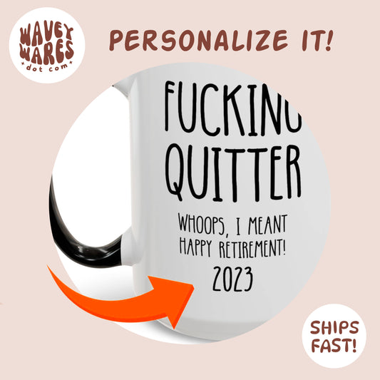 Personalized Fucking Quitter Whoops I Meant Happy Retirement Custom Year Coffee MugRegular price From $15.95Regular priceUnit price per$20.00Sale price From $15.95Sale