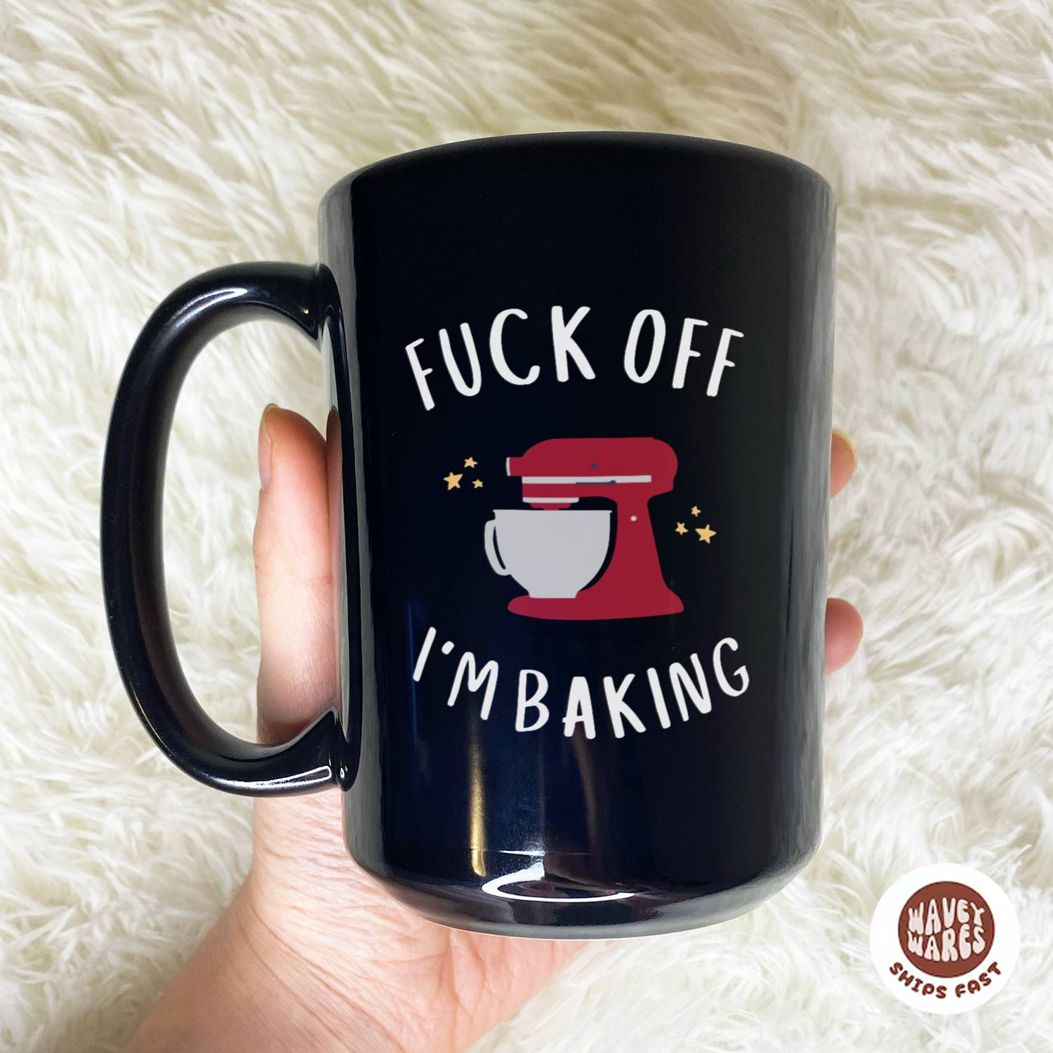 Step away from the oven—and the conversation. The WaveyWares® Fuck Off I’m Baking Black Mug is a must-have for flour-dusted warriors who don’t have time for chit-chat while perfecting pastry. Whether you’re elbows-deep in dough or channeling your inner Bake-Off champion, this mug delivers a clear message: interrupt me and risk your dessert. A hilarious gift for bakers who take their sugar, spice, and solitude very seriously. Whisk, sip, repeat.