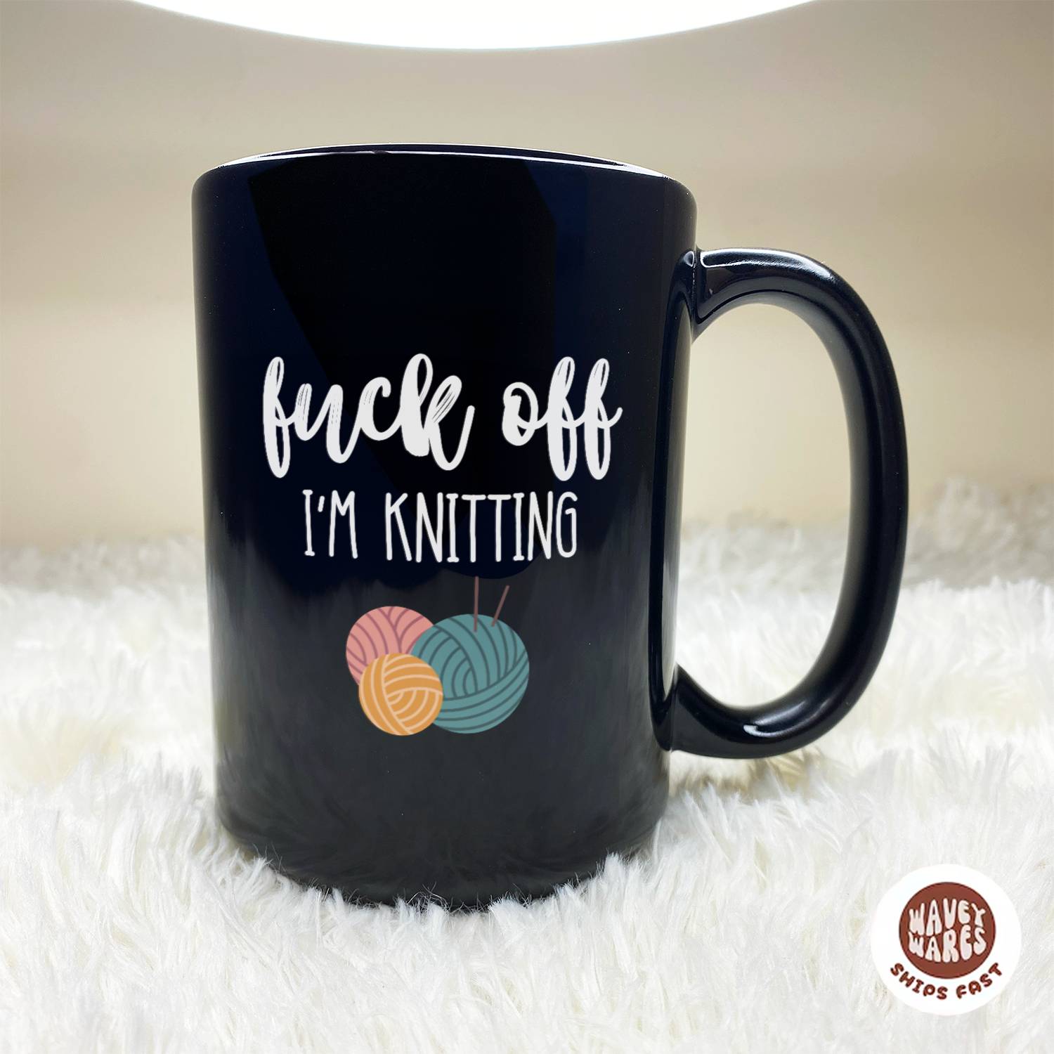 Counting stitches, not your nonsense. The WaveyWares® Fuck Off I’m Knitting Black Mug is perfect for yarn lovers who take their craft (and their quiet time) very seriously. Whether you're knitting socks, scarves, or your last shred of patience, this mug sends a polite-but-firm message to back off while the needles are clicking. A hilarious gift for knitters who prefer purls over people. Sip, stitch, and shush—it's knitting o’clock.