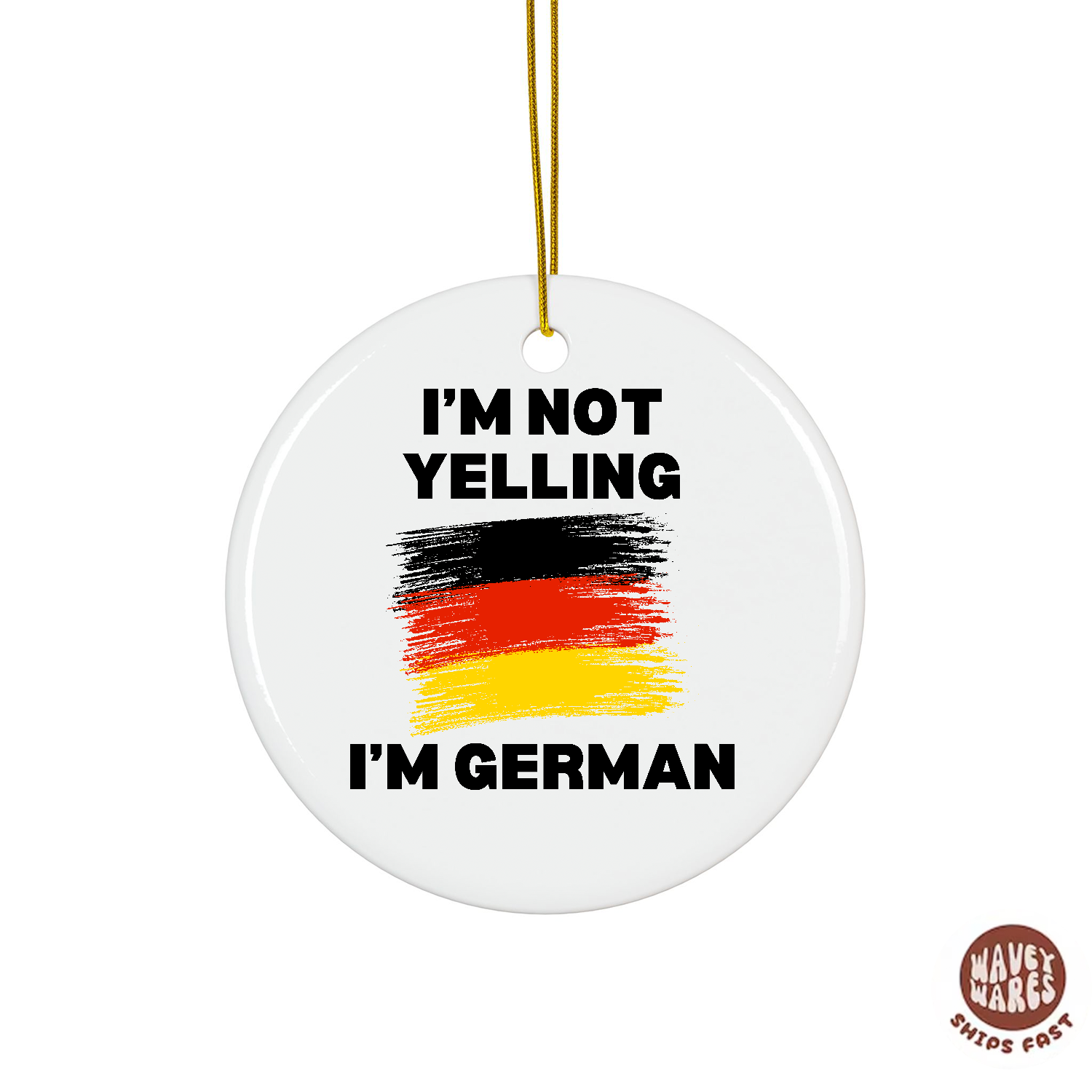 Celebrate German pride with the "I'm Not Yelling I'm German" funny ornament. This playful glass keepsake features a bold design perfect for adding humor and personality to your holiday décor or gifting. Whether for a German grandpa or a friend who loves their heritage, it’s a cool and lighthearted way to showcase cultural spirit with a smile.
