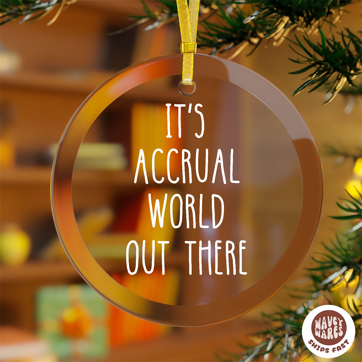 Add a dash of humor to your holiday decor with the "It's Accrual World Out There" ornament. This playful piece is perfect for accountants, finance pros, or anyone who loves clever accounting jokes. Great as a Christmas gift or an office decoration, it brings festive cheer and a smile during tax season and beyond.