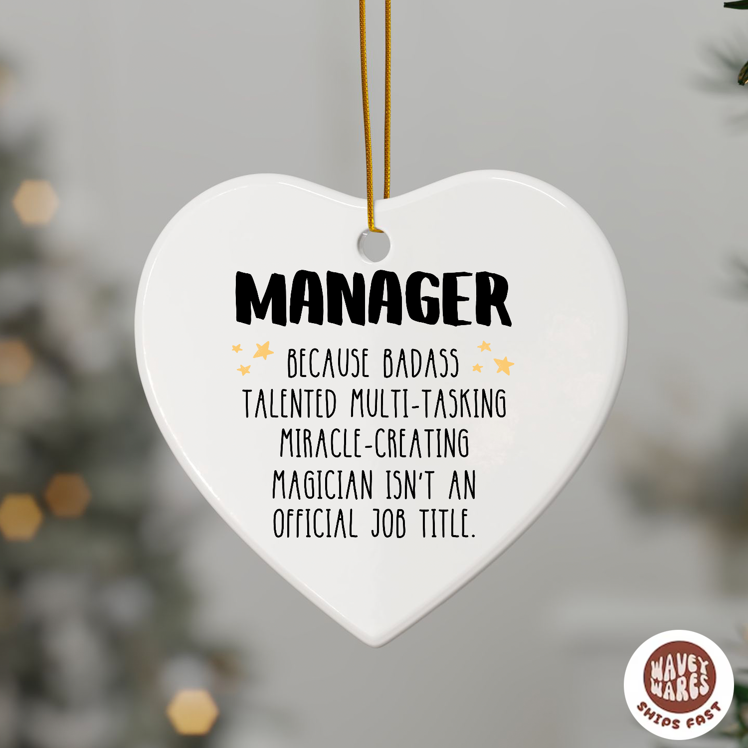 Celebrate the unsung hero in your office with this witty Manager Funny Ornament. Perfect for recognizing that multitasking miracle worker who juggles a hundred tasks before breakfast. Whether it's a Christmas gift, birthday surprise, or just-because token of appreciation, this playful hanging decoration brings humor to any workplace. Ideal for bosses, colleagues, and coworkers who deserve a laugh and a little recognition. A charming reminder that managing chaos is an art form.