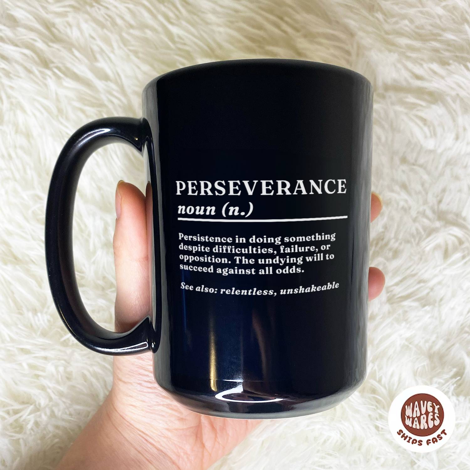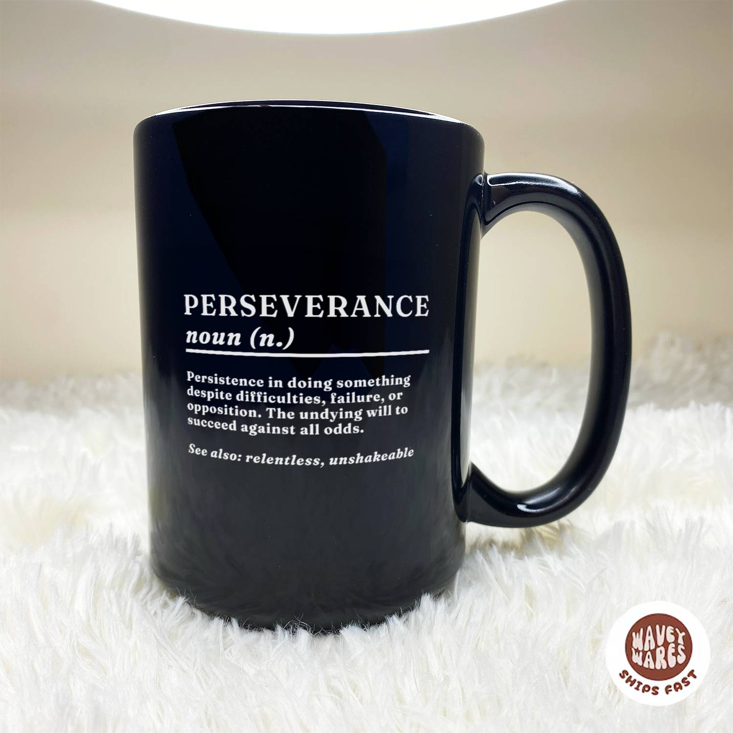 For the ones who keep pushing—no matter how tough the climb—the WaveyWares® Perseverance Definition Black Mug is a daily dose of grit in a cup. Featuring a sharp, dictionary-style definition of relentless determination, this mug is perfect for go-getters, dream-chasers, and anyone who knows success doesn't happen overnight. A thoughtful and motivational gift for students, entrepreneurs, and anyone grinding toward greatness—one sip at a time.