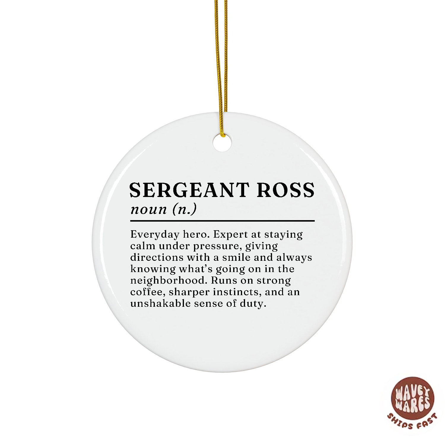 Celebrate your favorite sergeant with this playful Personalized Sergeant Definition Name Ornament. Customized with the name of your choice, it adds a fun and unique touch to any holiday tree or display. Perfect for showing pride and bringing smiles, this ornament makes a memorable gift that stands out with personality and charm.