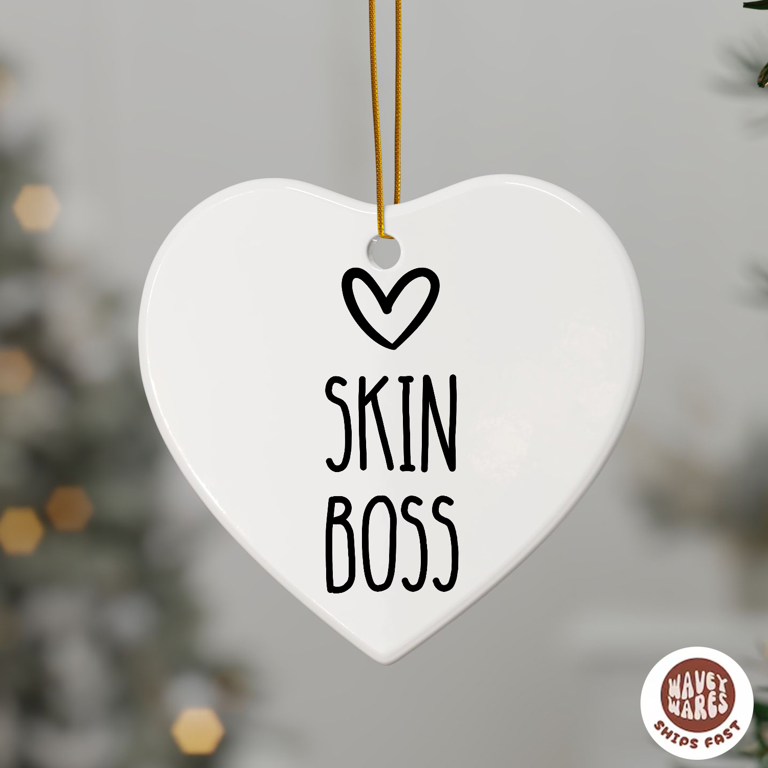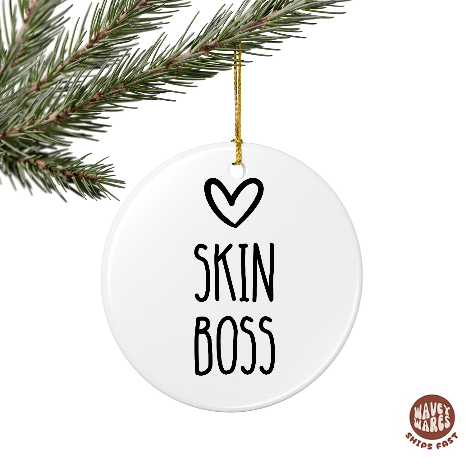 Celebrate the experts who keep skin glowing and confidence soaring. This fun ornament pays tribute to dermatologists, aestheticians, and skincare professionals who've mastered their craft and earned their "boss" status. Perfect for anyone dedicated to helping others feel beautiful in their own skin - literally. Hang it on your tree as a cheeky nod to their expertise, passion, and the transformative work they do every single day. An ideal gift for the skincare guru in your life who knows their way around a facial, a treatment plan, and a killer product recommendation. Because running a skin empire takes serious skill and style.
