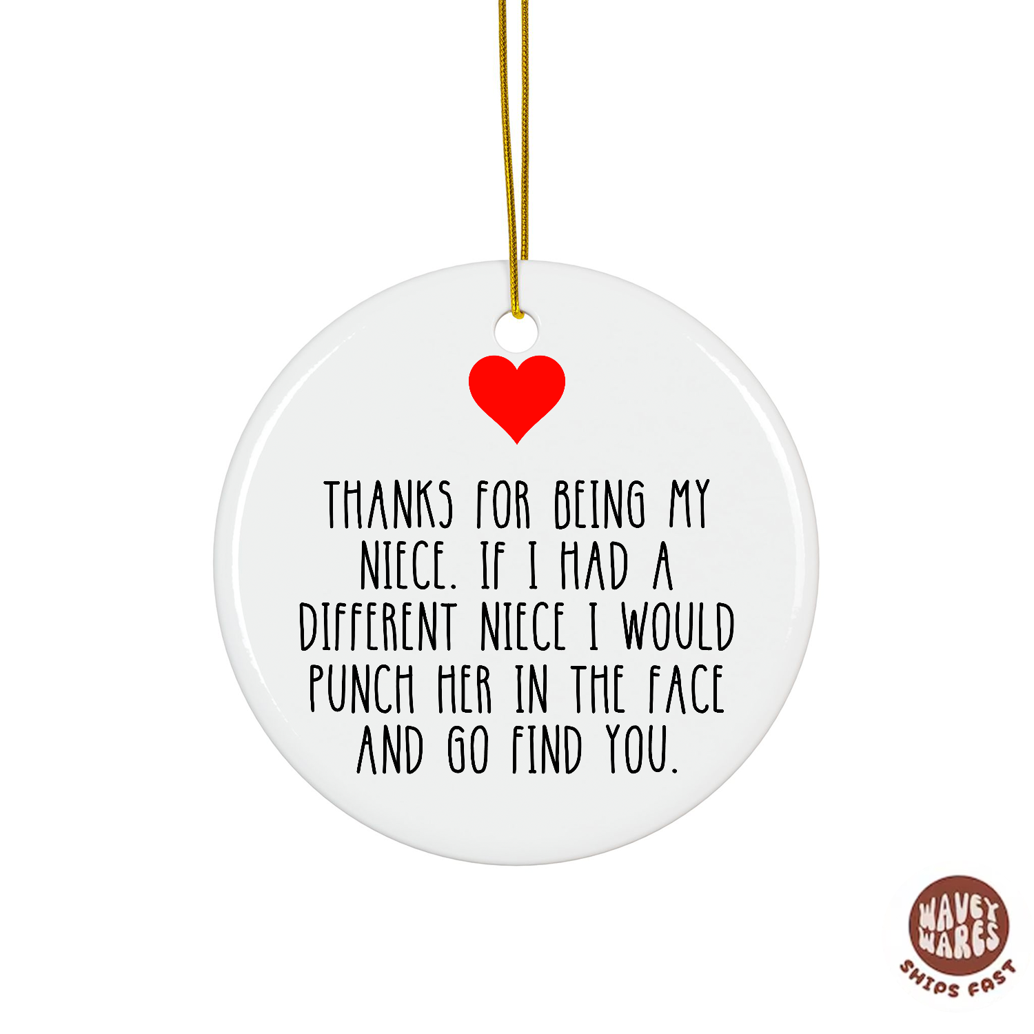 Thank you for being the coolest niece around! This charming ornament is the perfect way to celebrate your special bond and hang those heartfelt feelings right on the tree. Whether it's a Christmas keepsake from a doting aunt or uncle, this delightful decoration captures the joy of family in one adorable piece. Watch it sparkle year after year as a cherished reminder of your love and appreciation. The ideal gift for making family moments even more memorable.