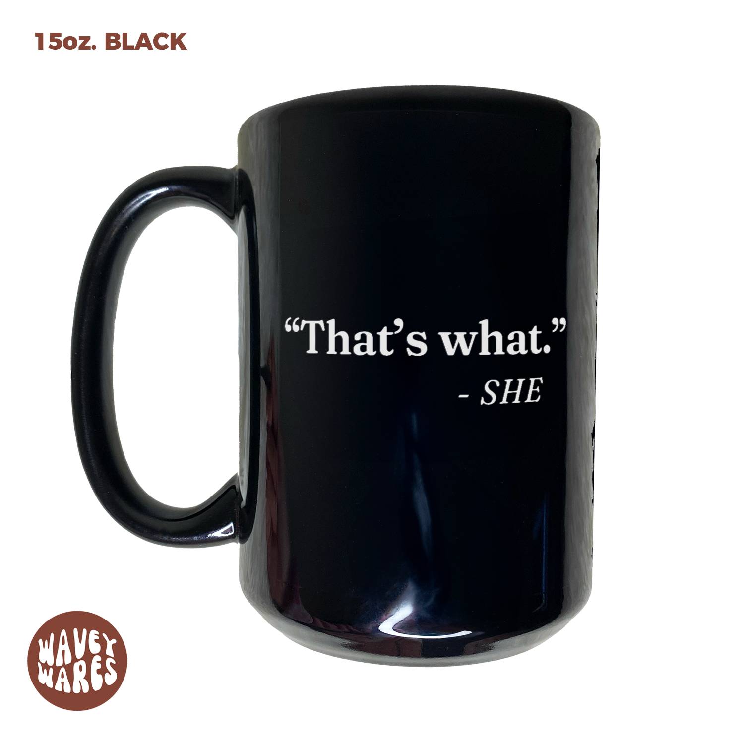 Bring the sass with the WaveyWares® That’s What She Said Black Mug! Bold, cheeky, and impossible not to smirk at, this mug is perfect for office banter, game nights, or anyone fluent in sarcasm. Whether you're gifting it or keeping it for yourself, it's a guaranteed conversation starter—and a daily reminder that timing is everything.