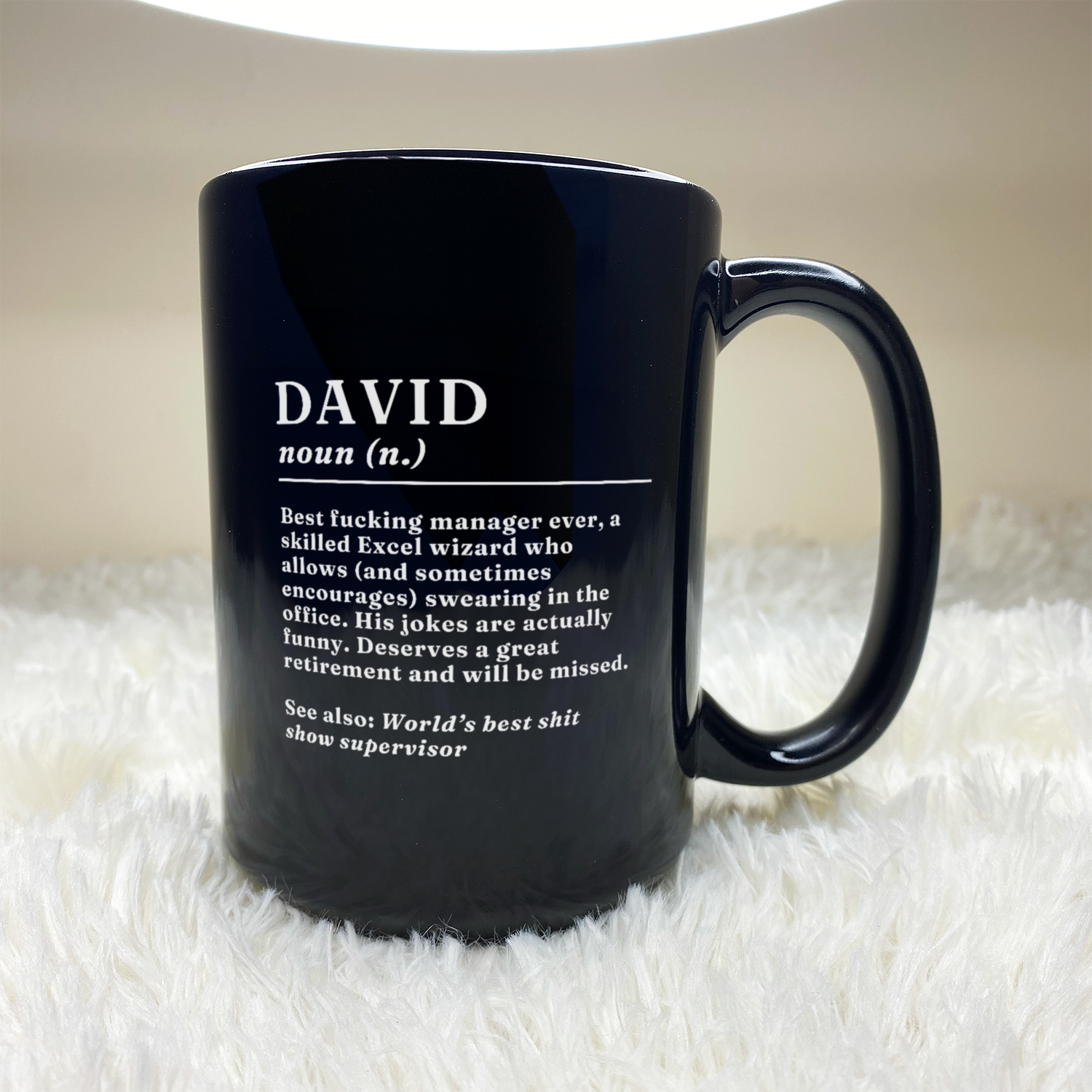 Surprise someone awesome with the WaveyWares® Custom Name Definition Mug! With its black color and unique design, this mug is the perfect personalized gift for managers, coworkers, bosses, spouses, friends, or family members. Add a unique touch with their name and give them a gift for remember!