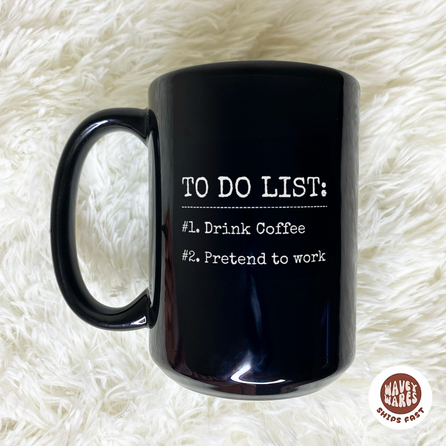 WaveyWares® To Do List: Drink Coffee and Pretend to Work Black Mug