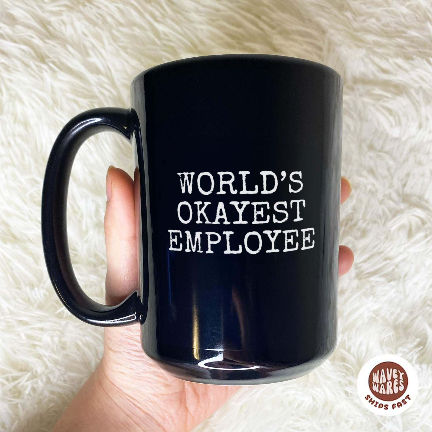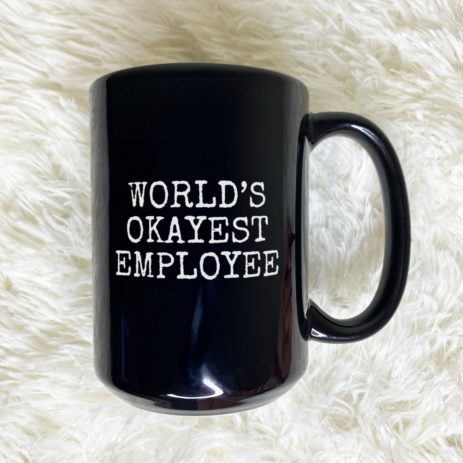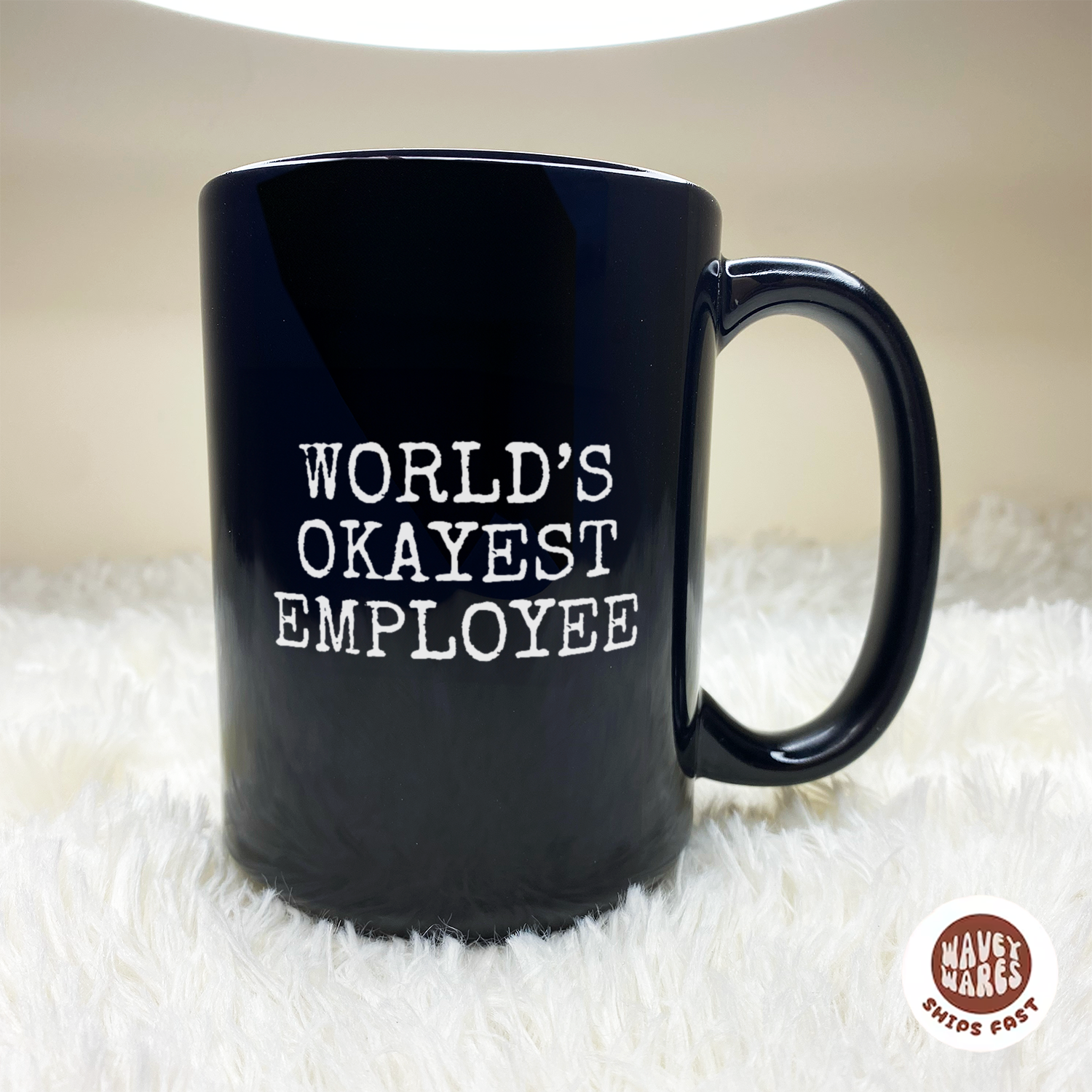 Make your office mates laugh with the WaveyWares® "World's Okayest Employee" black glossy coffee mug. This gag gift is perfect for any coworker or boss, and will surely brighten up any work day. Show off your sense of humor with this quirky and fun mug. (Seriously, it's an okay gift, we're not trying to be too cheesy here.)